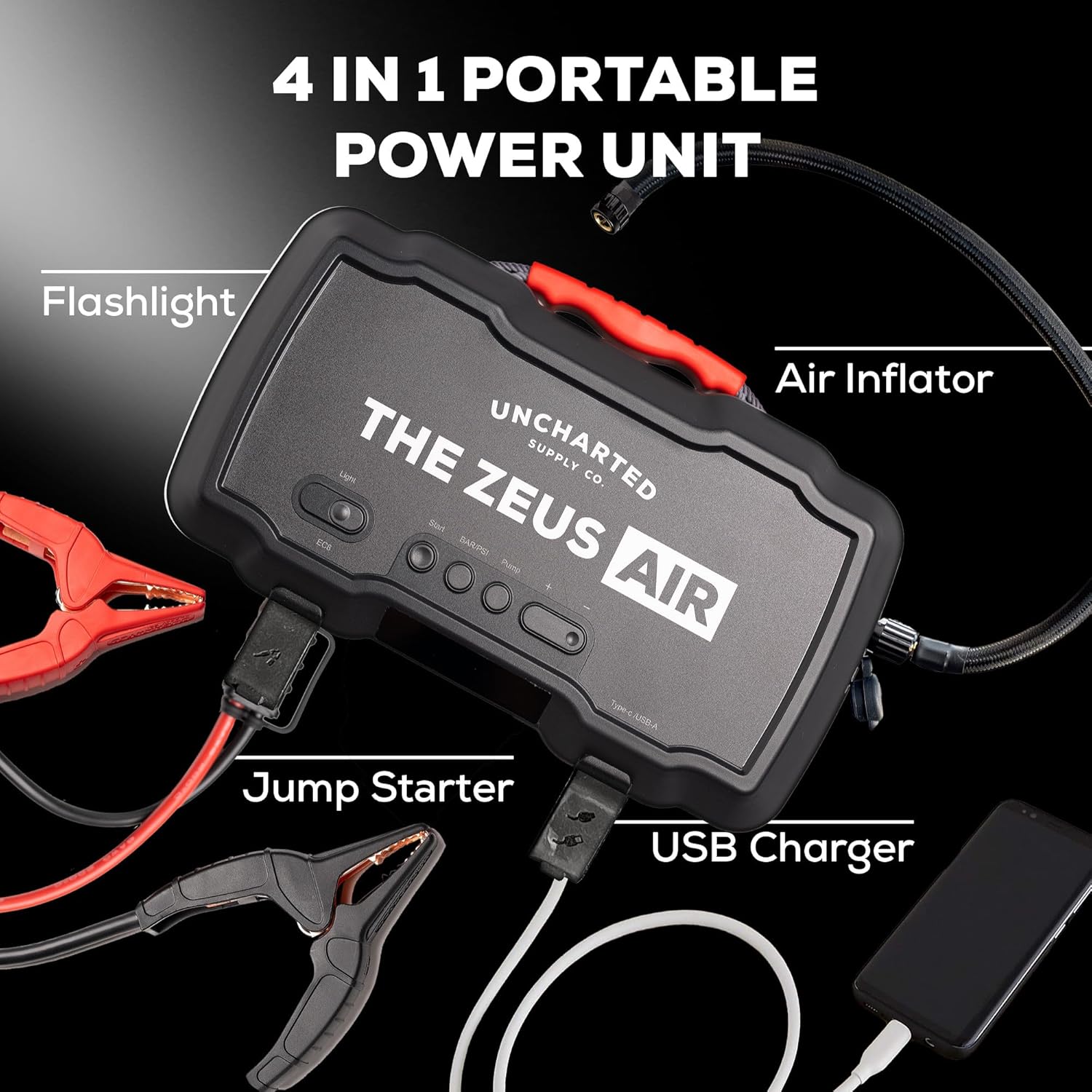 Uncharted Supply Co. Zeus Air, Portable 2000A Jump Starter, 150 PSI Tire Inflator & Compressor, 15,000mAh Power Bank with USB-C Fast Charging & LED Flashlight