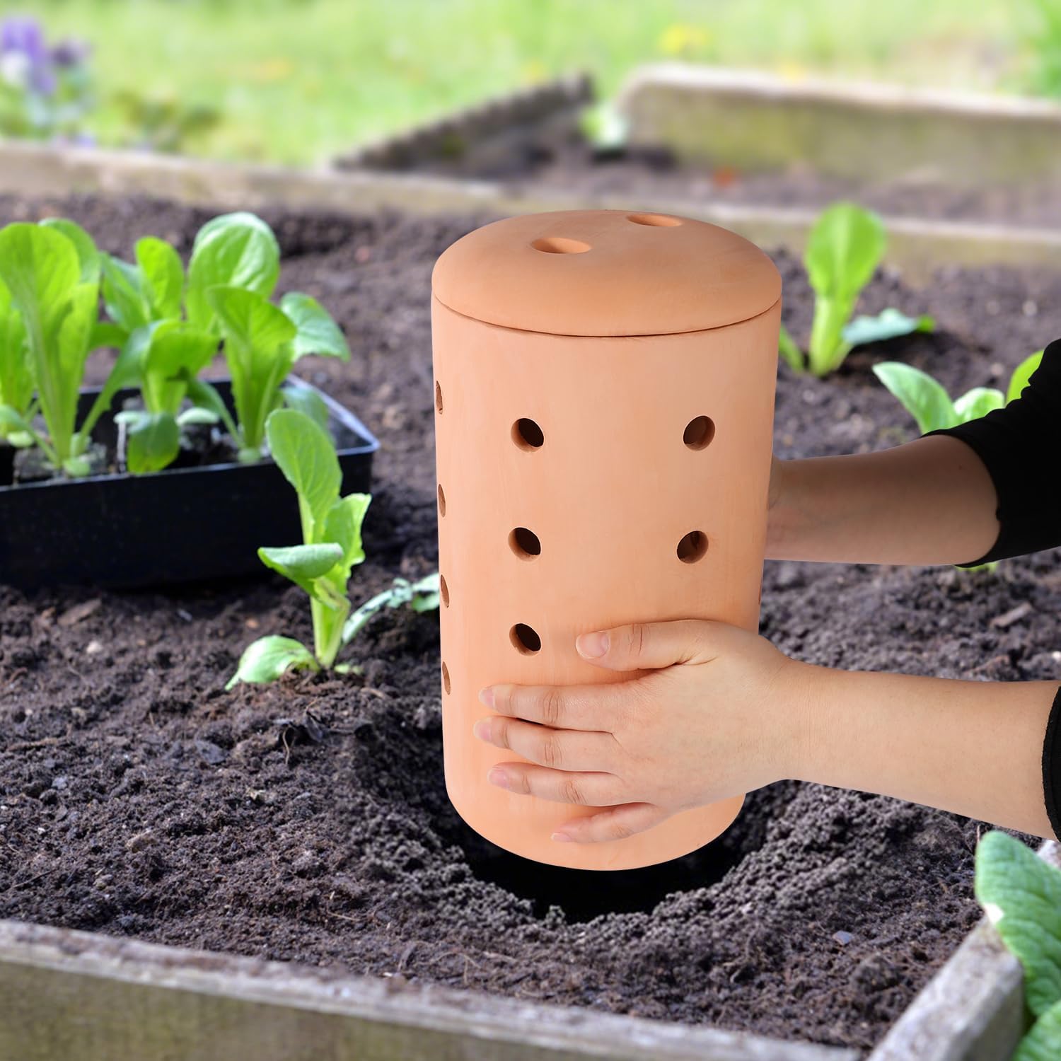 🌾 Natural texture: The red clay material compost bin has a warm earthy tone, and the cylindrical design is simple and elegant, seamlessly blending with various garden styles. Anti freezing cracking, stable throughout the year, reducing maintenance