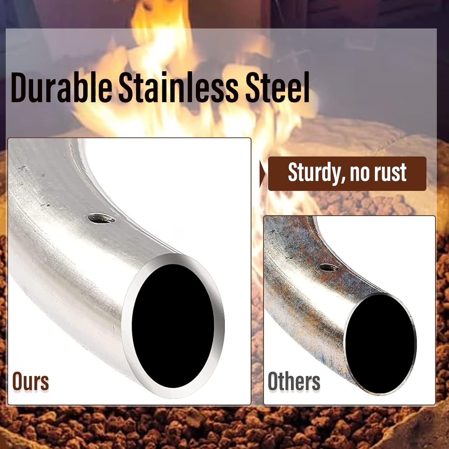 【Premium Stainless Steel】- High quality Stainless Steel to withstand high temperatures and harsh weather. Sturdy and well constructed with really good heat output. Resist corrosion, more durable and last longer, no need to replace your fire pit burner kit again and again. Add some lava rocks and fire glass you like to fill your fire pit ring ►Converted your Solo Stove, Used the 12” ring on Solo Stove. So easy to enjoy a quick 20 minute fire now. No ashes or embers to worry about