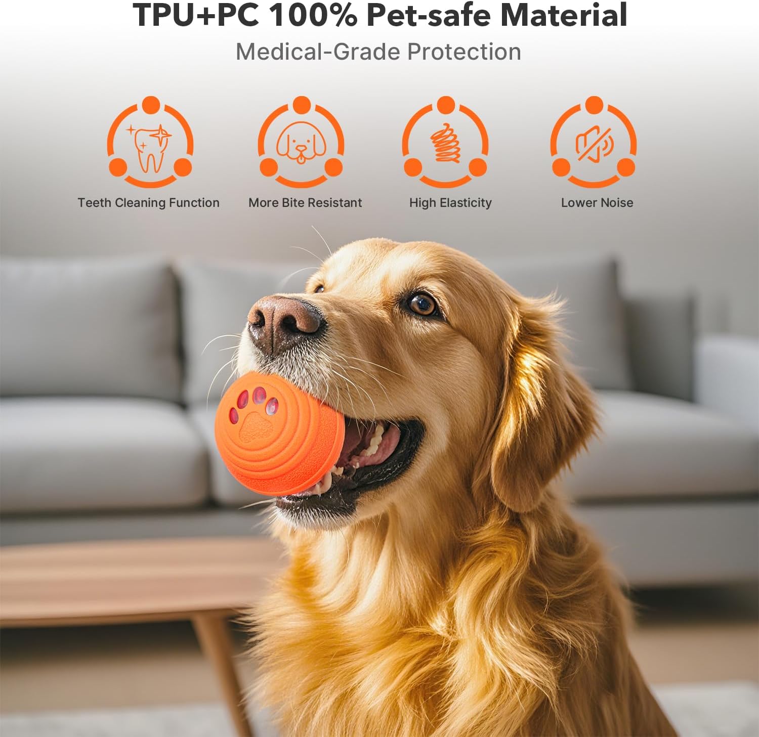 Upgraded Interactive Dog Toys, Motion Activated Automatic Rolling Dog Balls, 4 Play Modes, Durable TPU+PC Shell, Long-Lasting Battery for Small/Medium/Large Dogs (Orange)