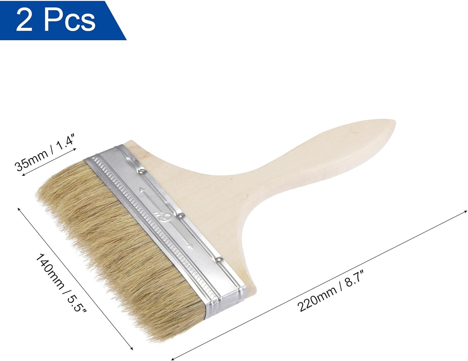 uxcell 2Pcs 5.5 Inch Paint Brush Natural Bristle Flat Edge with Wood Handle Wall Treatment Tool for Paint, Varnishes, Glues