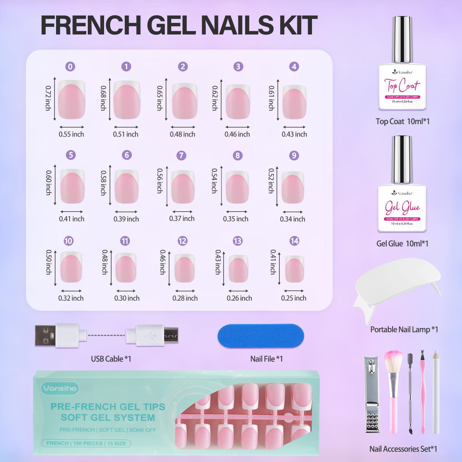 【3 IN 1 FRENCH GEL TIPS】Vansiho gel nail uses internal sanding technology to make the surface of the nail tip more rough, making the adhesion between the nail and glue stronger and not easy to fall off.