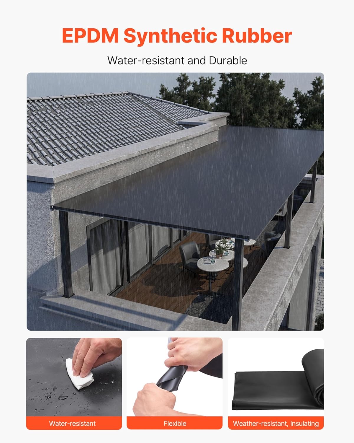 VEVOR Roll Roofing, 15 x 30 ft, 45 mil EPDM Rubber Roofing, Long Lifespan & Weather-Resistant, Withstands Harsh Temperatures, Flexible & Easy Installation, Roof Underlayment for RVs, Roofs, Ponds