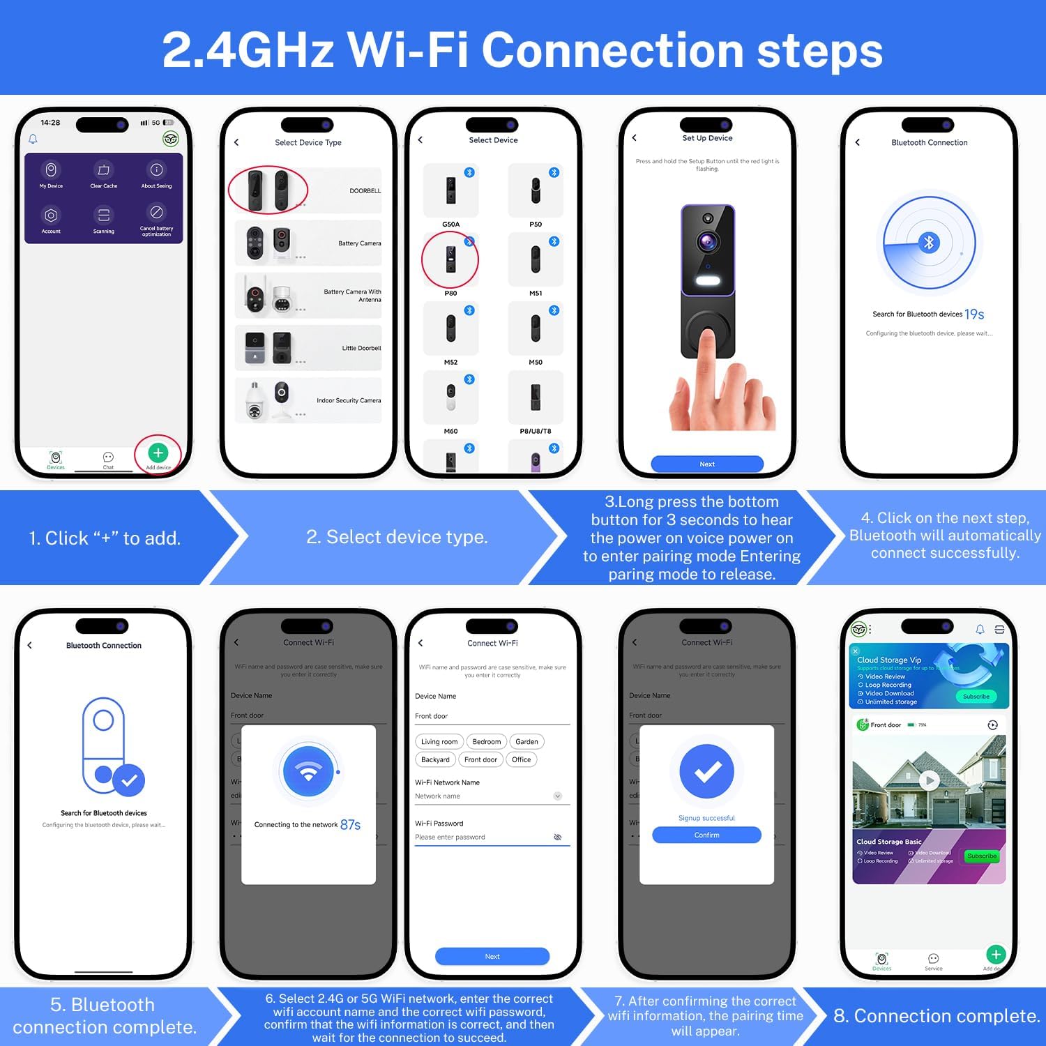 (1) The doorbell camera only works with 2.4GHz Wi-fi. Please connect it to a 2.4GHz network.