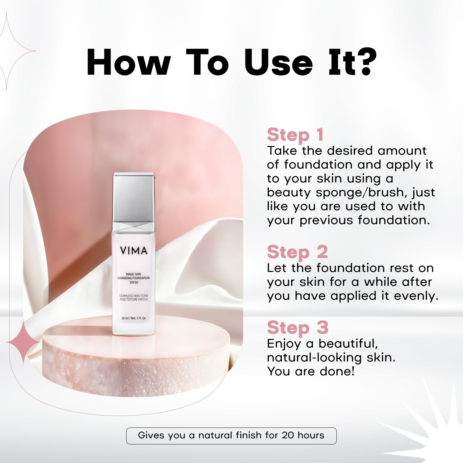 Vima Color Changing Foundation with Sunscreen – Fragrance-free – Paraben-Free and Vegan Makeup – Lightweight, Long-Lasting Coverage – 1 fl oz