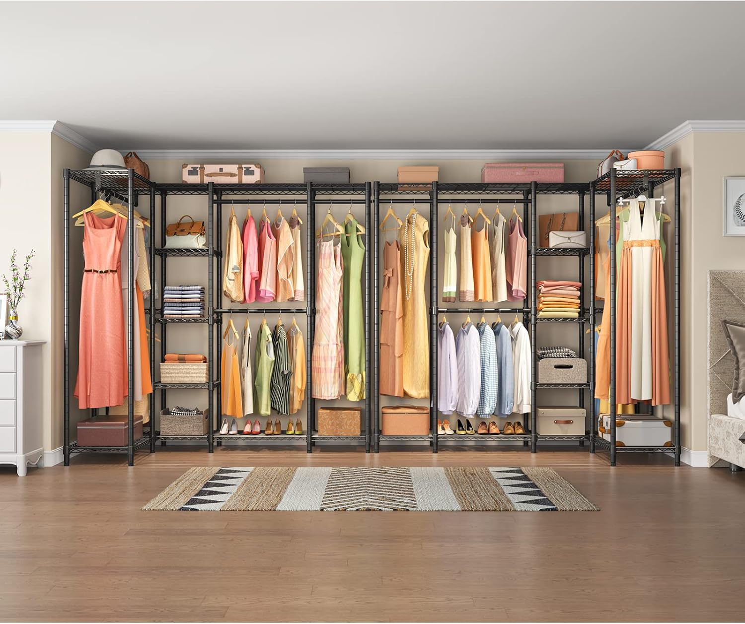 Multi-type Installations: This clothes rack has various Installation methods to fit your different storage needs. L shape for small spaces like corner, apartment, bedroom; Straight-lined shape for walk-in closet and cloakroom clothing store.