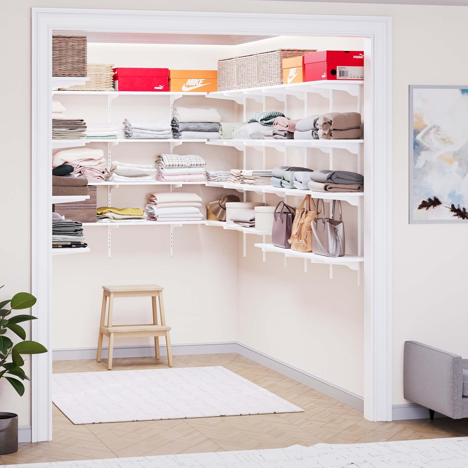 Be the first to review “Wallniture Turin 48″x10″ Floating Shelves for Wall Storage, Closet Storage Shelves, Book Shelf with Adjustable Standard Rail Bracket System for Pantry & Laundry, White, Wood”
