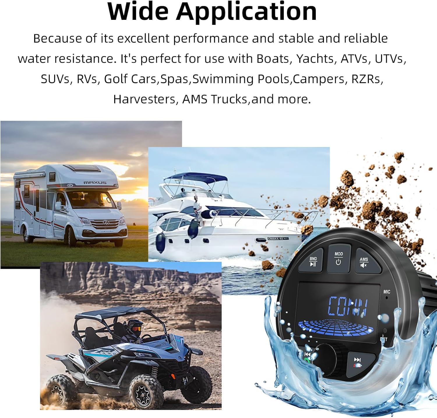 🚢【IPX Waterproof Marine Radio 】– Stands up to salt spray, rain, and dust for true Waterproof Marine Stereo performance.