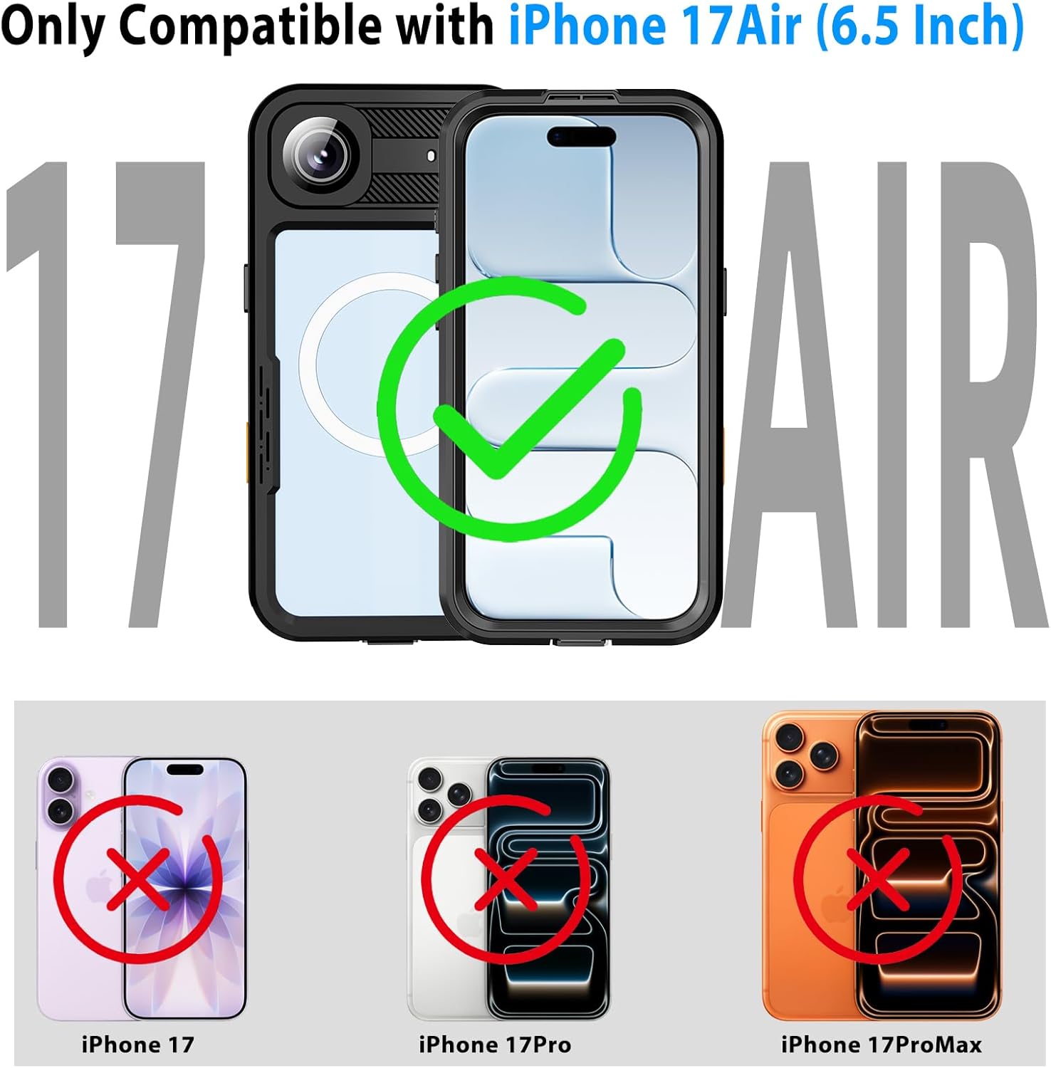 【Shock-Absorbent Protection】The Waterproof Case iPhone 17 Air is made of shock-absorbing TPU and PC, with all four corners reinforced to withstand shocks and falls up to 6.6 feet. It makes the iPhone 17 Air case shock-absorbent and will provide 360 degrees of protection for your Phone.