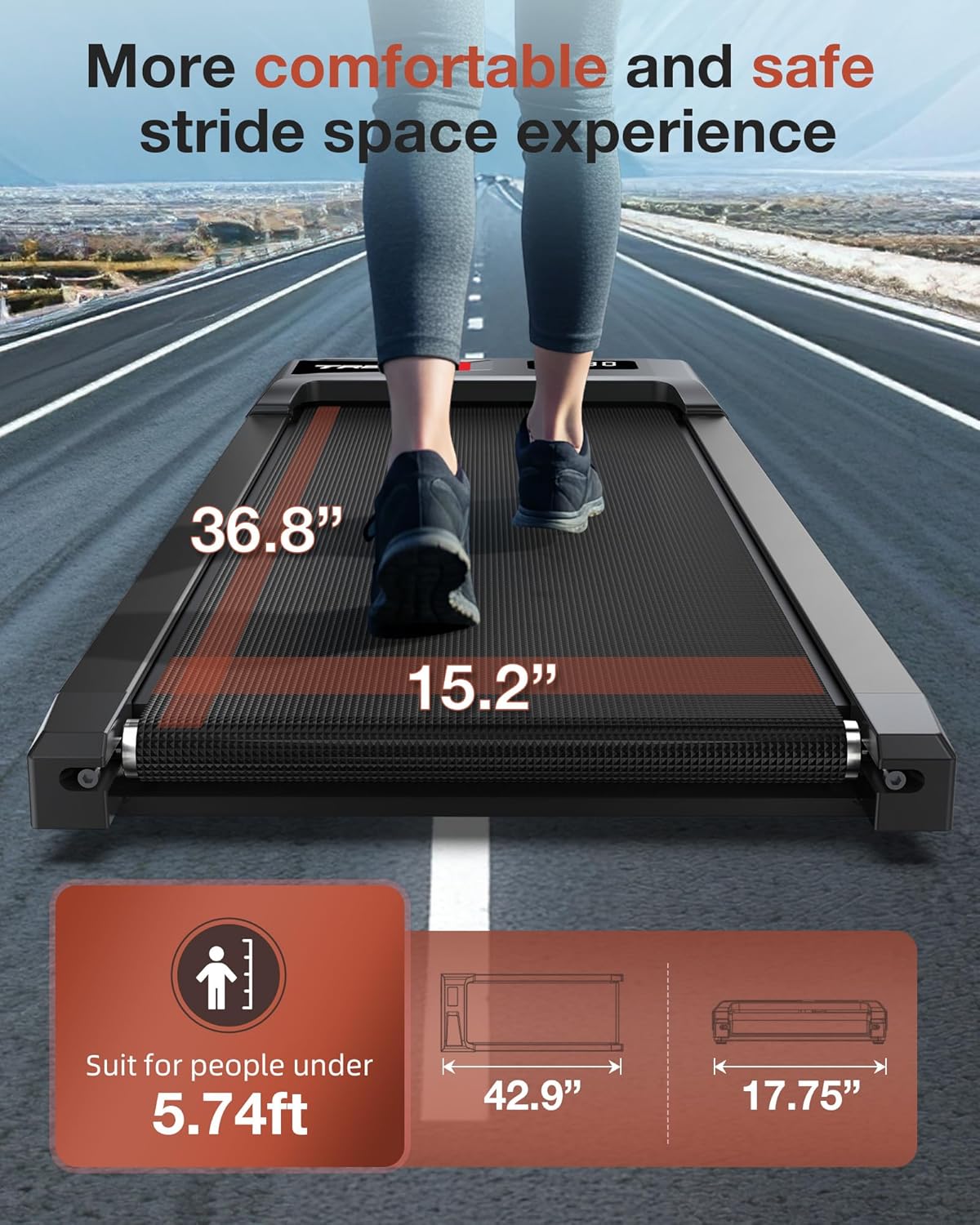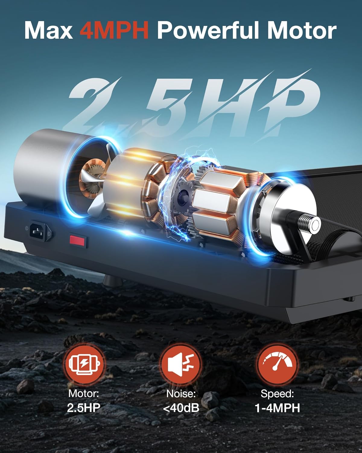 Powerful and Noiseless 2.5HP motor: The walking pad supports an impressive weight capacity of up to 265lbs. Moreover, it offers a versatile speed range from 1 to 4mph, allowing seamless transitions between walking and running to cater to diverse exercise requirements. This whisper-quiet under desk treadmill enables convenient workouts anytime, anywhere at home or in the office without causing any disturbance to colleagues or neighbors.