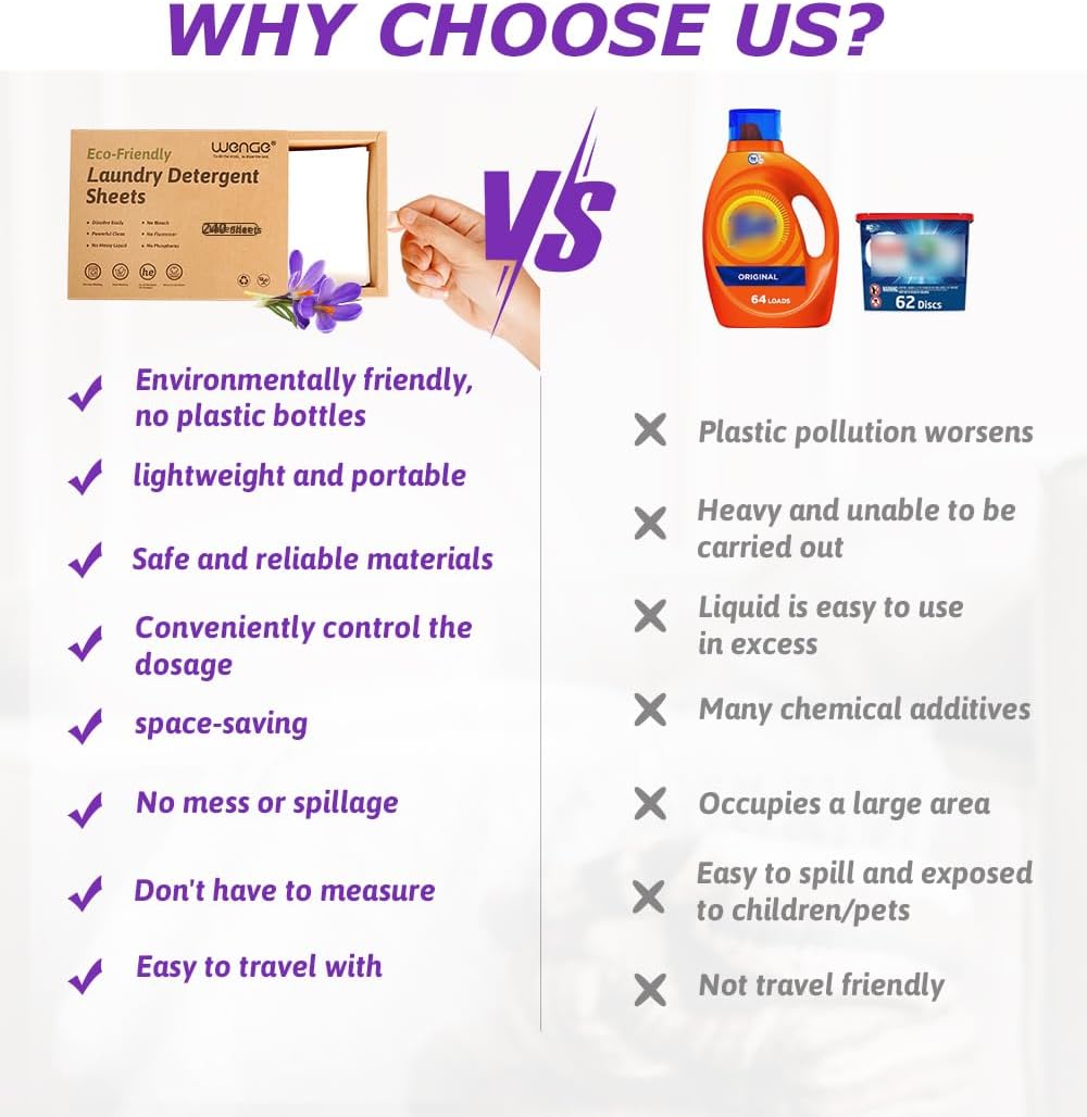 Wenge Eco-friendly Laundry Detergent Sheets – 240 Plastic-Free, Hypoallergenic Liquidless Washer Sheets for Home, Dorm, Travel, Camping (Lavender Scent)