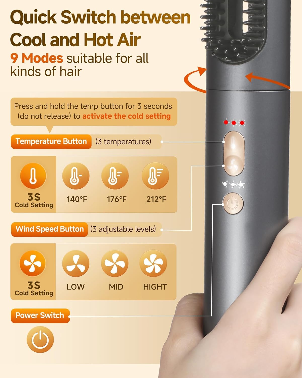 HIGH SPEED PRECISION HAIR DRYER: Windblow blow dryer is designed for fast and effective mini drying. It breaks the limitations of traditional blow dryers, significantly shortens drying time, and creates smooth hair for you. Using a Windblow thermal brush while blow-drying can reduce the generation of static electricity, reduce hair knotting, and the hair from breakage. The machine can quickly drier hair while also enhancing the luster and toughness of the hair, saving you time in styling.