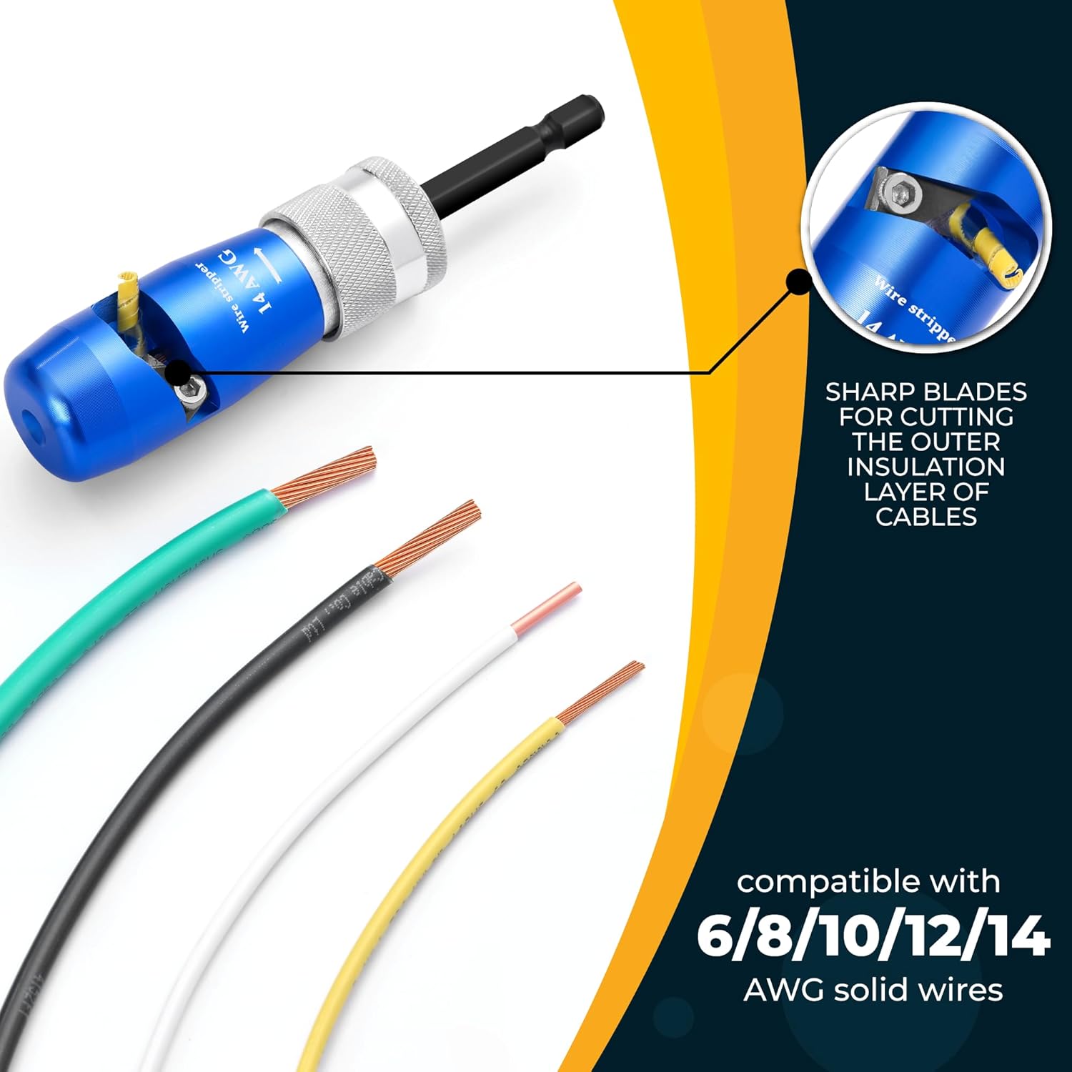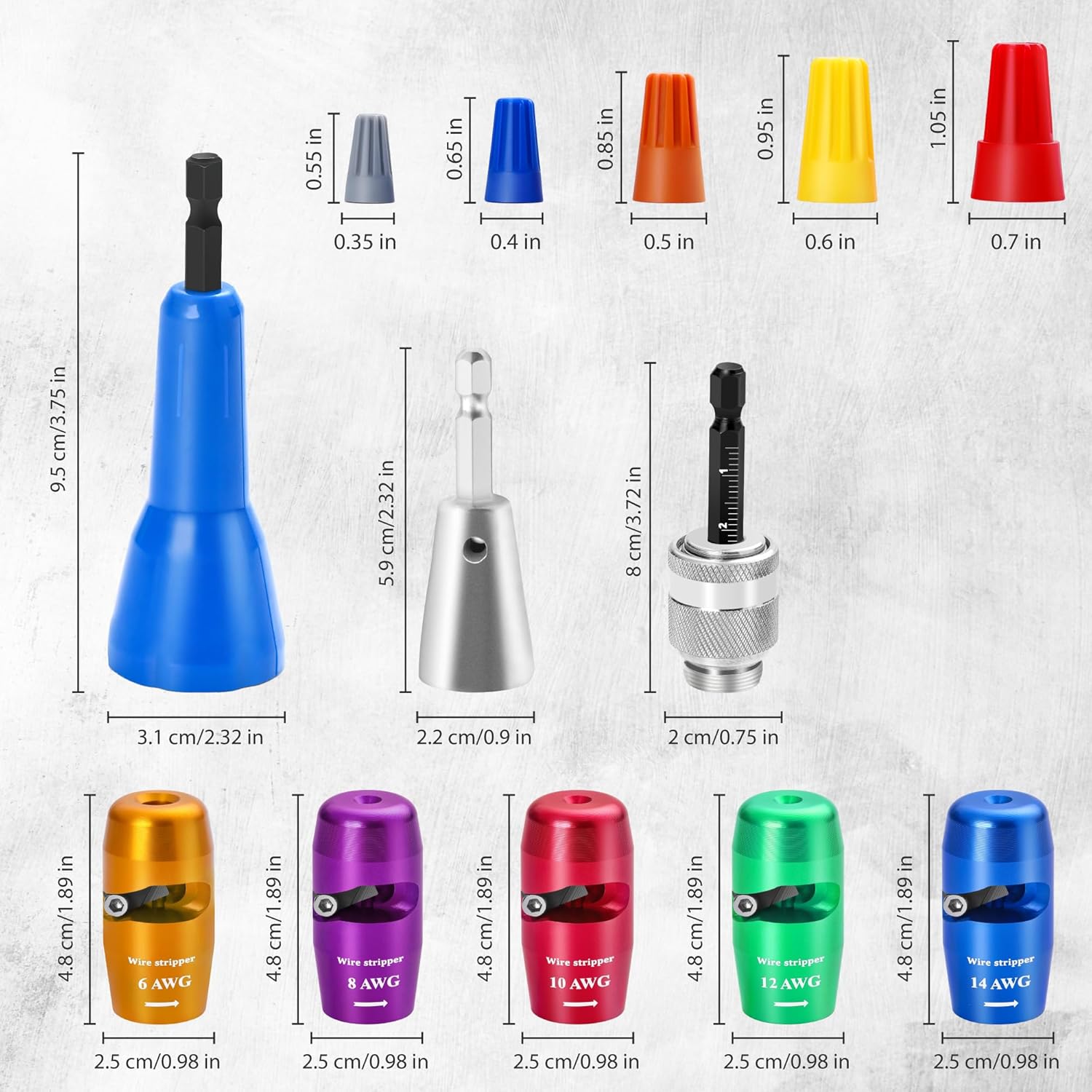 Wire Stripper Tool for Drill, Wire Stripping and Twisting Tool for AWG 14-12-10-8-6 Gauge, Wire Stripper for Electric Drill, 25PCs Wire Connectors Nuts
