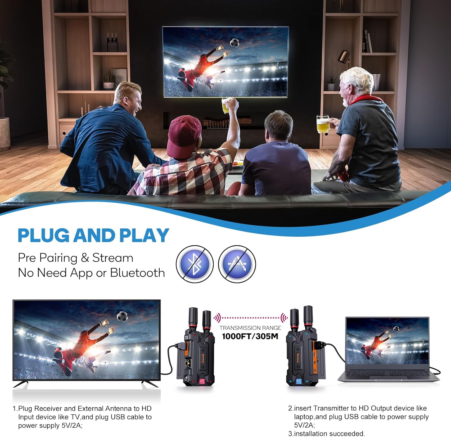 After I plugged the transmitter and receiver it into my laptop and monitor, the connection established quickly without any complicated steps. The video feed streams in high quality and the audio remains clear with no noticeable delays. I use it for presentations and home entertainment and it handles both tasks without any problem. The signal stays strong even across different rooms and I like the freedom from tangled cables. My workflow feels smoother and the wireless HDMI integrates seamlessly with my devices.