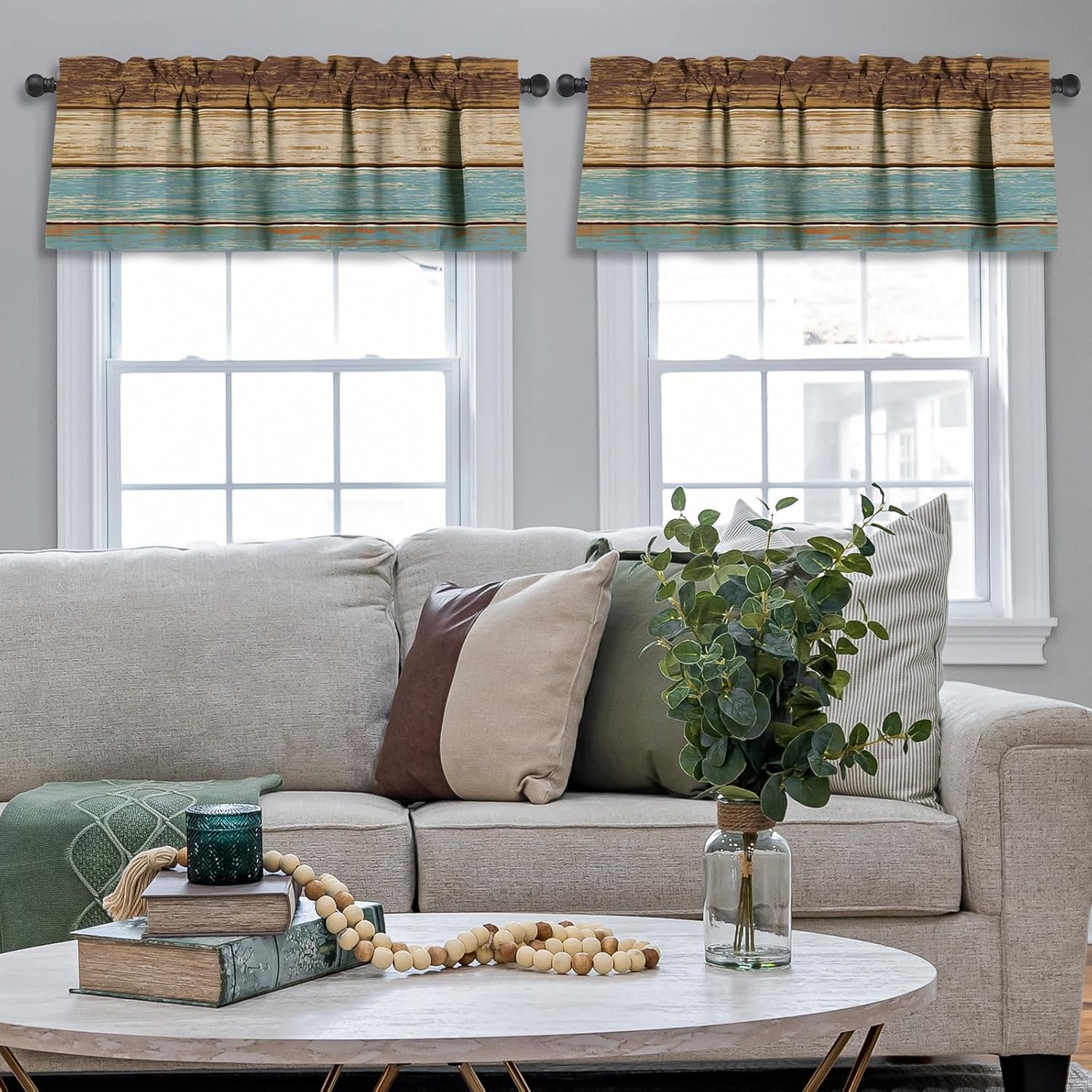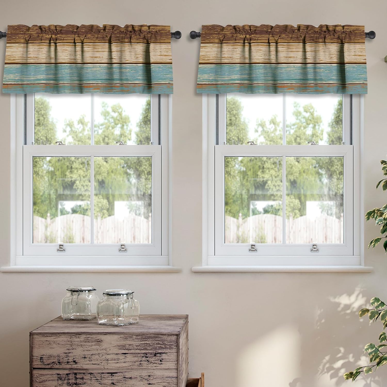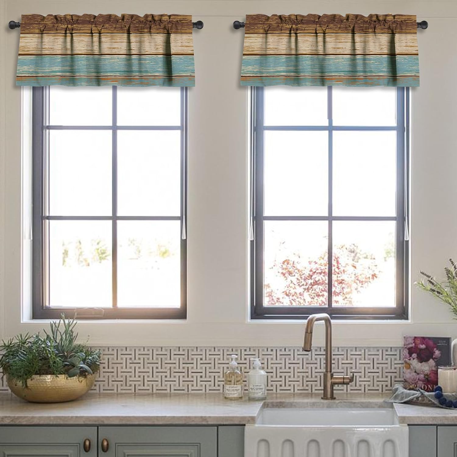Wood Texture Kitchen Curtains Abstract Art Valances for Windows Blackout Window Treatment Valances Rod Pocket Curtain Valance for Bathroom Bedroom Living Room Cafe,52 X 18 Inch,2 Panel