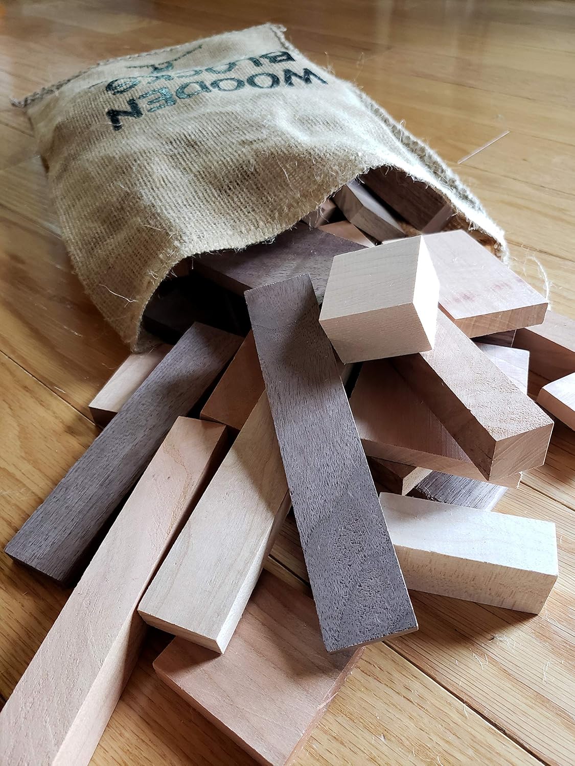 The title of the item tells you what you need to know: It’s a 5-pound box of wooden blocks. Three different types of hardwood, and various sizes. Some of the pieces were a little roughly cut, but a bit of sanding fixes that problem. I am using these for learning how to carve and whittle pieces of wood, so they’re just about perfect. Some people have mentioned not getting the bag shown in the pictures. If/when you buy this check underneath the flaps of the cardboard at the bottom of the box, mine slipped underneath them and blended in with the cardboard. All in all, you’re paying for a 5-pound box of wooden blocks, and that’s what you’re getting.