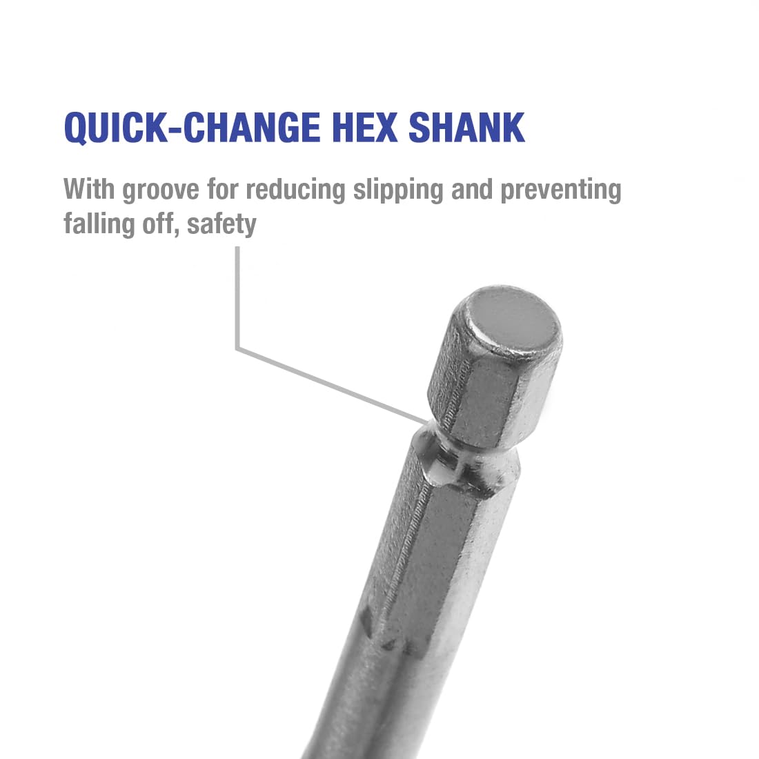 Quick-Change Hex Shank, with groove for reducing slipping and preventing falling off, safety