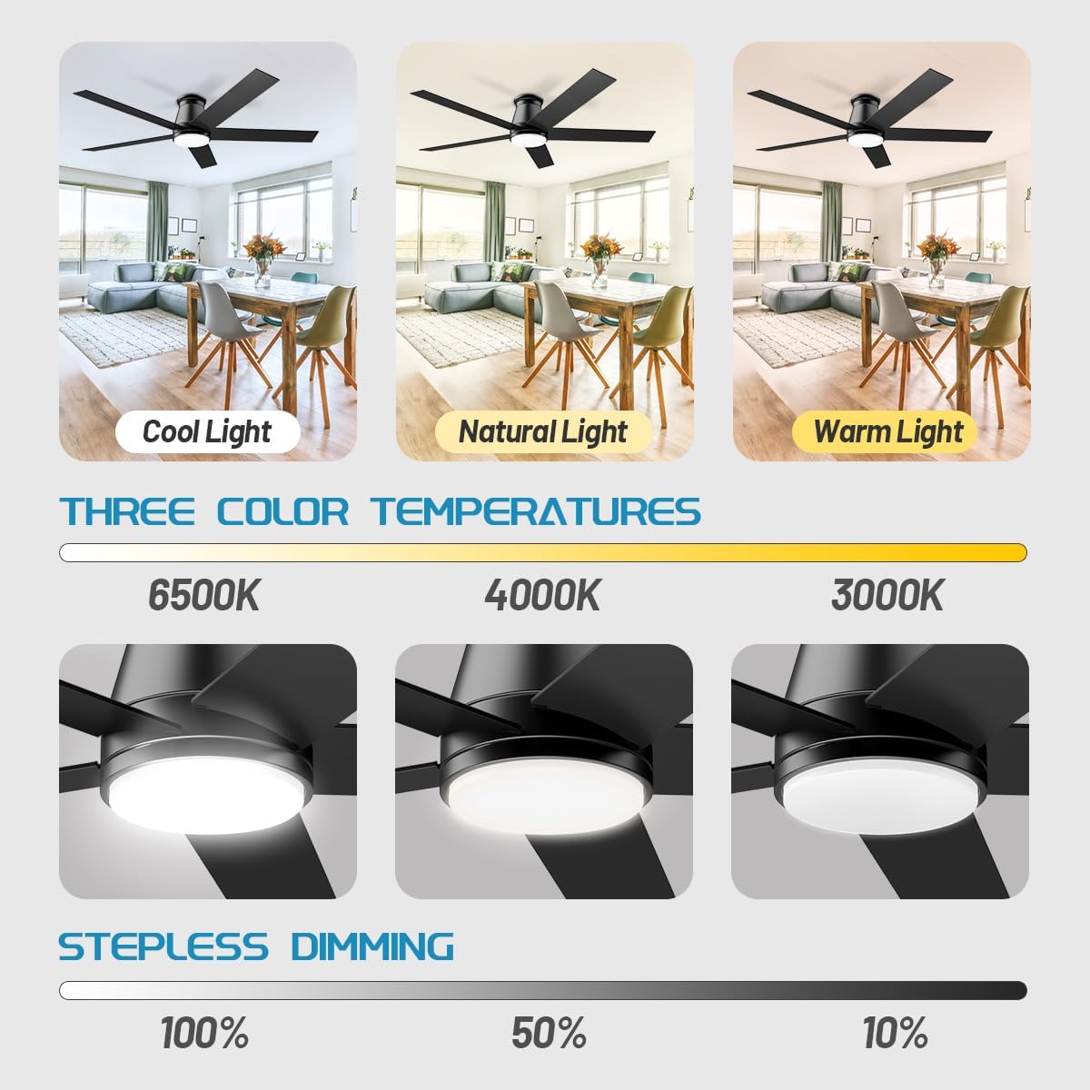 Upgraded Remote Control: The ceiling fan is dimmable, We upgraded the remote control for your convenience. With a separate button for color temperature, you can easily select your desired color temperature within two seconds.