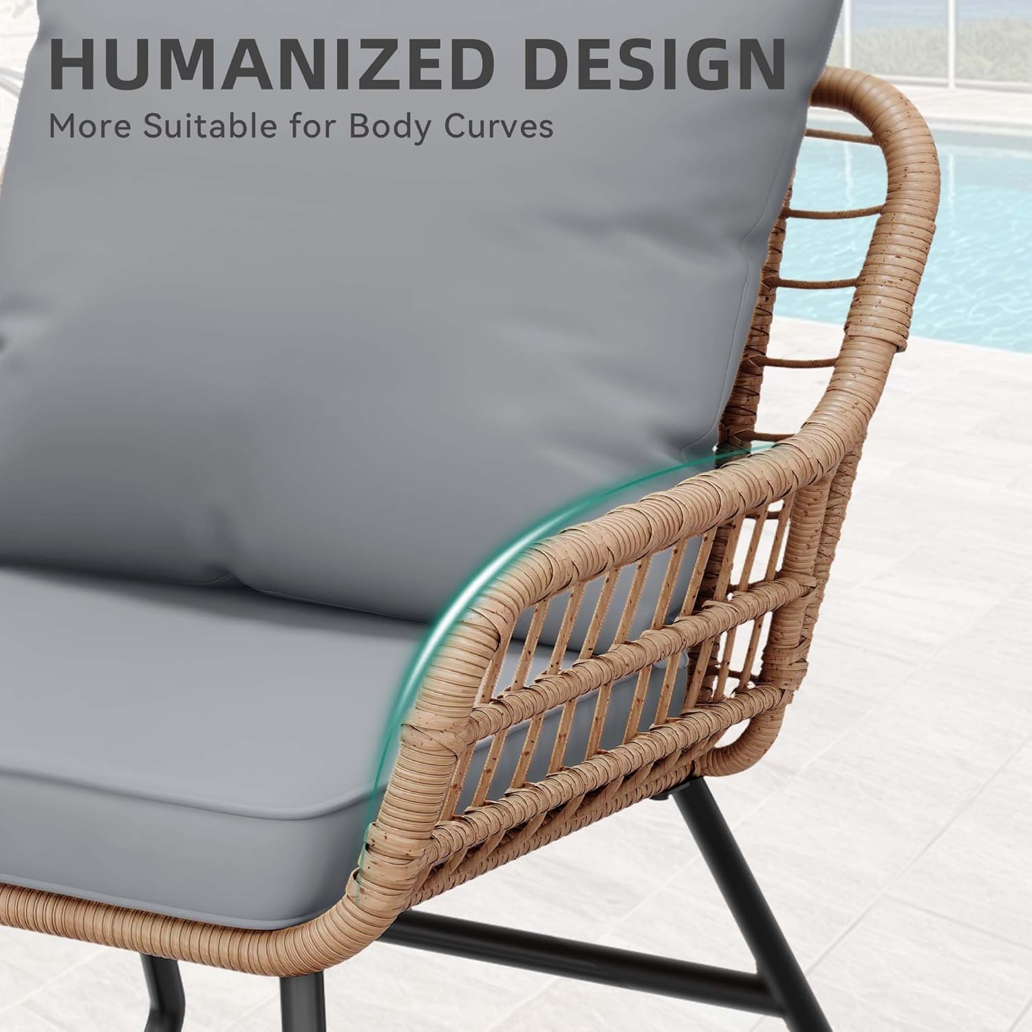Built to Last: Each piece in this wicker patio furniture collection is crafted with a strong, supportive frame and handwoven rattan for durability; Adjustable feet enhance stability on uneven ground, while a 250 lb capacity ensures secure seating for everyone