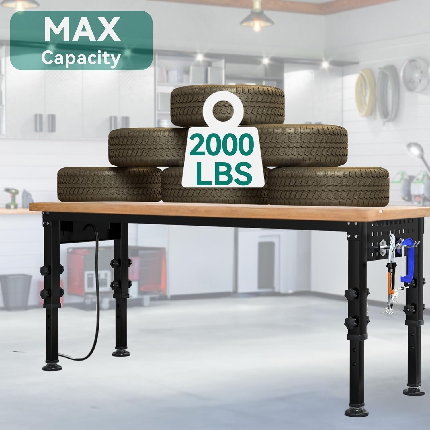 8 reviews for YITAHOME 72 Inch Work Bench, Adjustable Height Workbench for Garage, Heavy Duty Work Bench with Pegboard & Power Outlets, 2000 LBS Load Capacity, Rolling Workbench for Workshop, Office