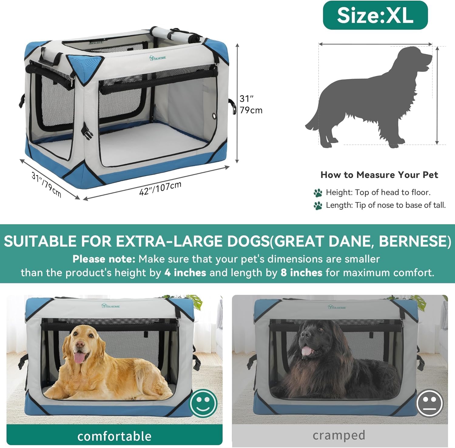YITAHOME Collapsible Dog Crate, 4-Door Portable Travel Dog Crate, 4-Door Folding Soft Dog Kennel with Breathable Mesh Windows & Soft Mat,Indoor & Outdoor Use, 42″ L x 31″ W x 31″ H, Flat Style