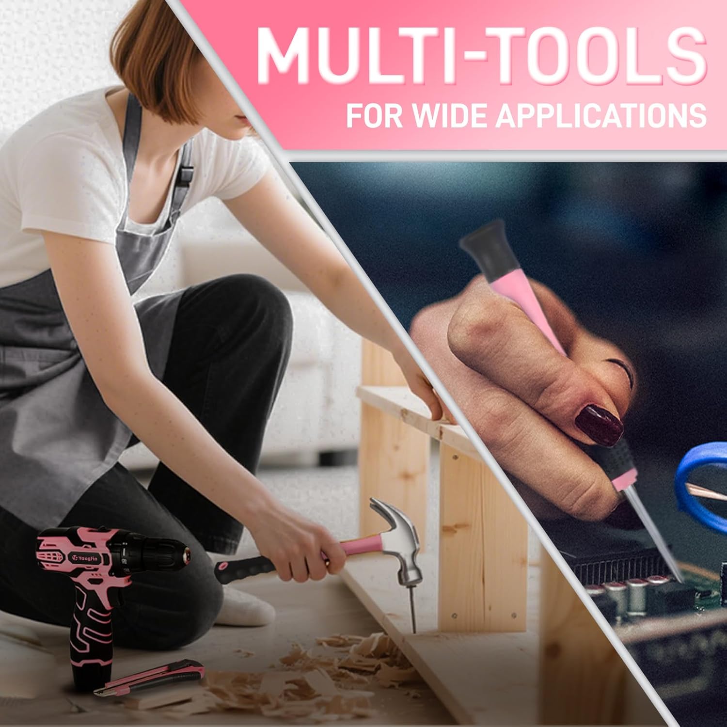 8 reviews for YOUGFIN Pink Drill Set for Women, Tool Kit with Drill 12V or Home Office Repairing & Improvement, Household Drill Set Power Tool with Pink Tool Box 195 Pieces