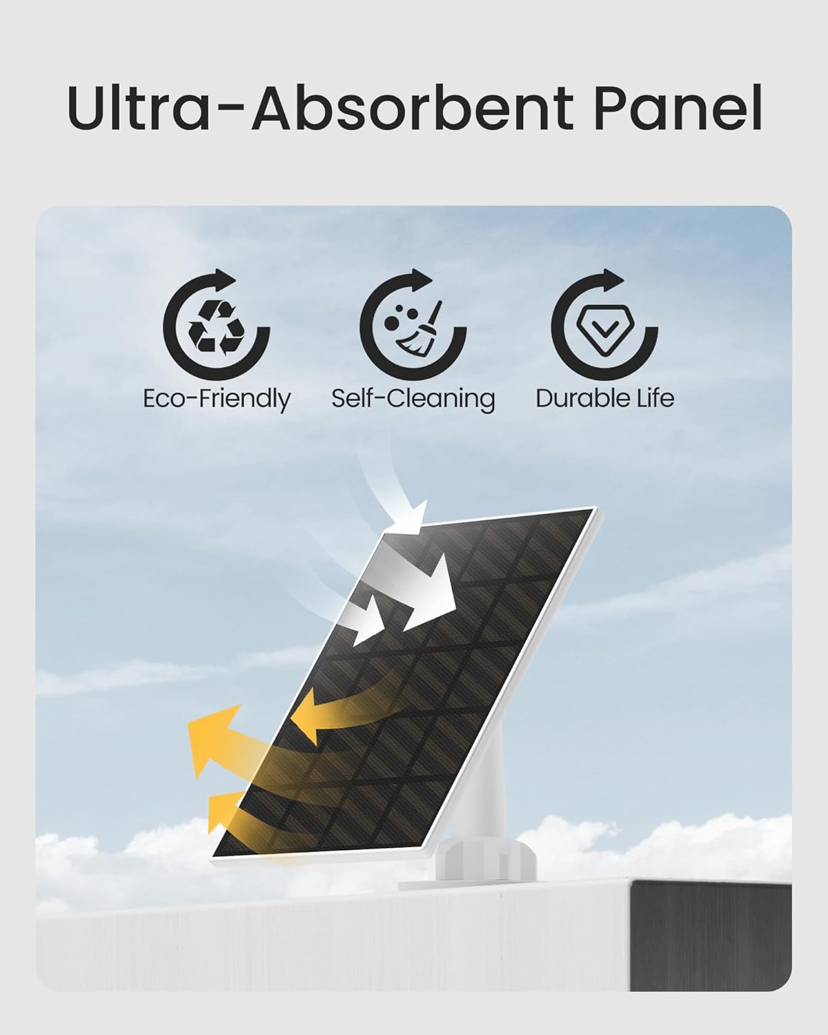 Hassle-Free Power Solution – Say goodbye to the inconvenience of frequent battery changes. This solar panel ensures your camera stays powered with minimal effort, enhancing security and peace of mind.