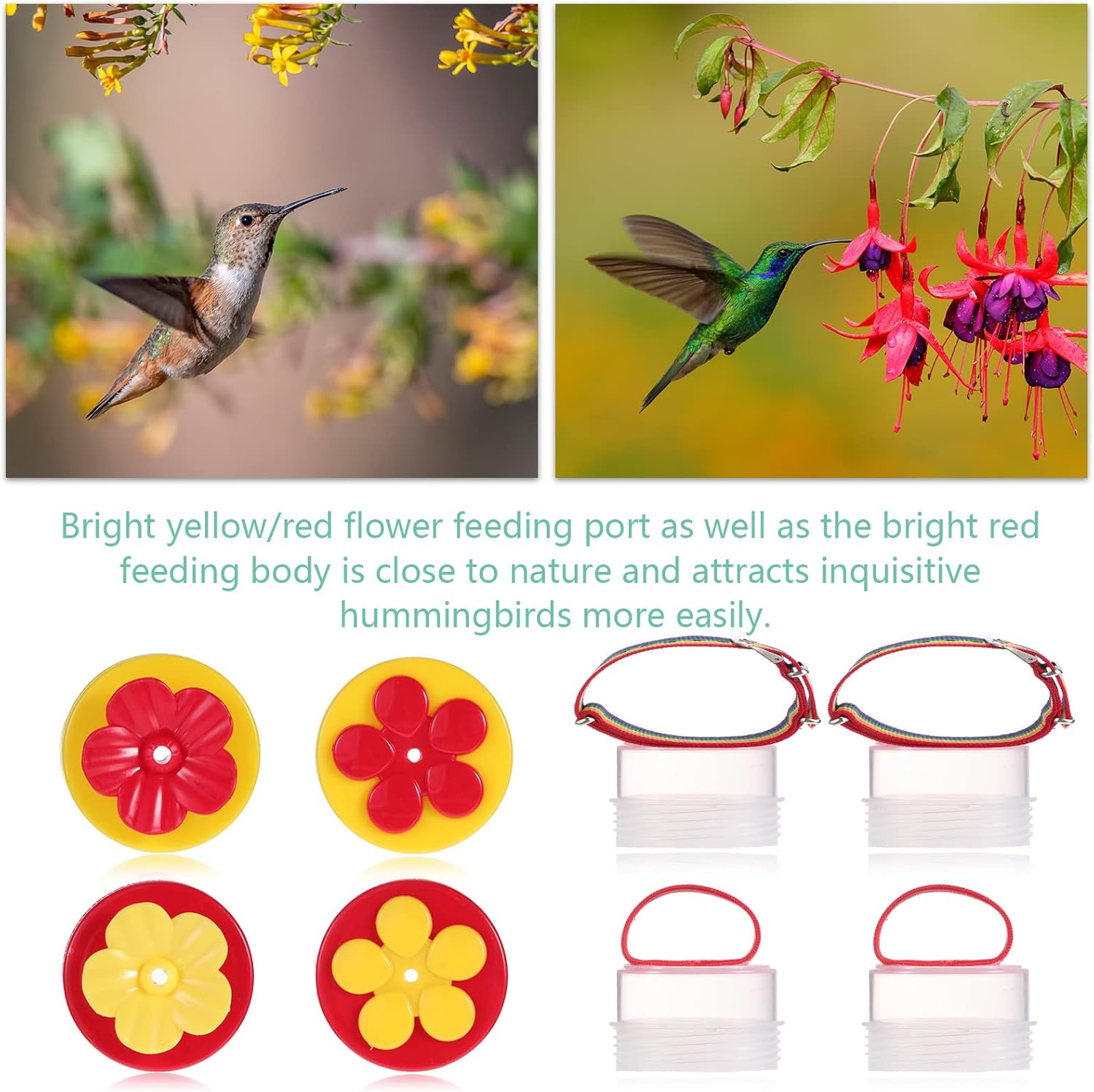 Cute and suitable design: 2 of these mini hummingbird ring feeders are designed with flower shape and ring bottom and the other 2 hummingbird feeders are designed in wrist style, which is easy for you to put on wrist, suitable for birds to stay on them, and convenient for you to observe the hummingbirds
